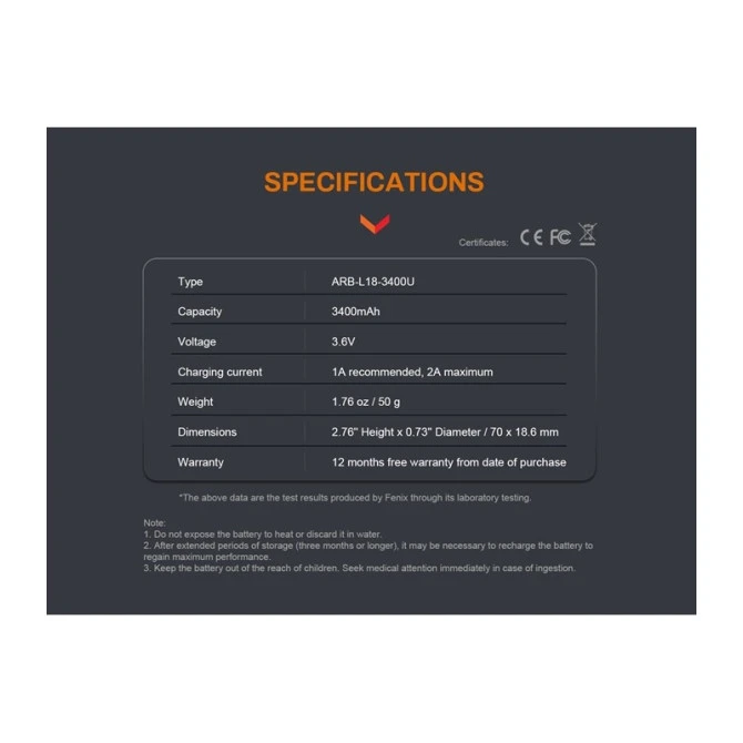 Ya tienes a la venta en Leopard la ARB-L18-3400U es la nueva batería de iones de litio, desarrollada por Fenix, con una capacidad de 3400 mAh. Compatible con infinidad de linternas: serie TK, PD, HM, CL y muchas más.