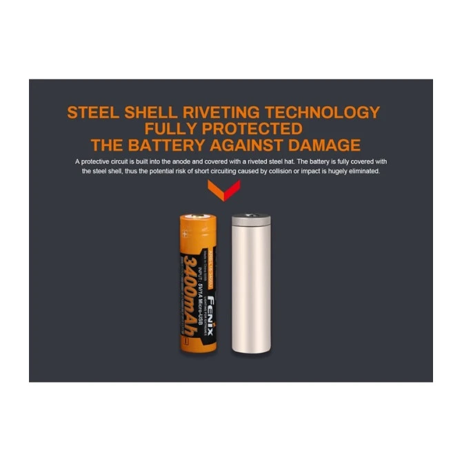 La ARB-L18-3400U proporciona herramientas de iluminación con mayor duración. Recargable mediante puerto Micro USB, la batería además tiene un indicador del nivel de carga. La protección múltiple garantiza la seguridad de uso y el buen rendimiento de la batería; la tecnología de remachado de carcasa de acero la protege contra daños. Además los respiraderos de alivio de presión expulsan rápidamente el gas interno.