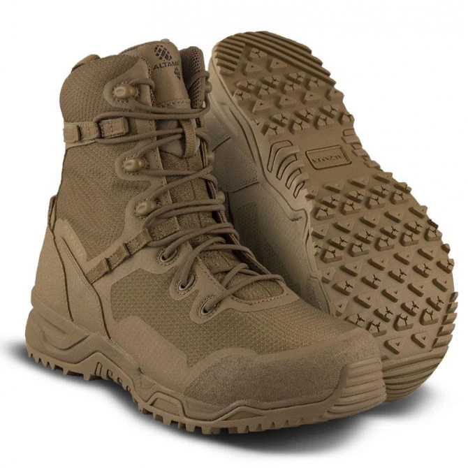 Las Raptor 8 Coyote de Altama son unas botas de caña alta fabricadas en malla de poliéster de secado rápido, lo que asegura una magnífica transpirabilidad del calzado aun en ambientes húmedos. En este sentido, la seña de identidad de este calzado táctico es su resistencia, ligereza y confort.