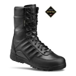 El modelo S.W.A.T Pro GTX representa los principios de comodidad y seguridad en los productos de la marca italiana. Al elegante acabado en cuero negro impermeable, se le une la tecnología CSF MARCO CRISPI® SKELETON FRAME, el forro GoreTex® Insulated Confort Footwear Lining, las suelas de goma de alto rendimiento y las plantillas extraíbles. Todo ello hace de este producto una buena elección para un uso táctico.