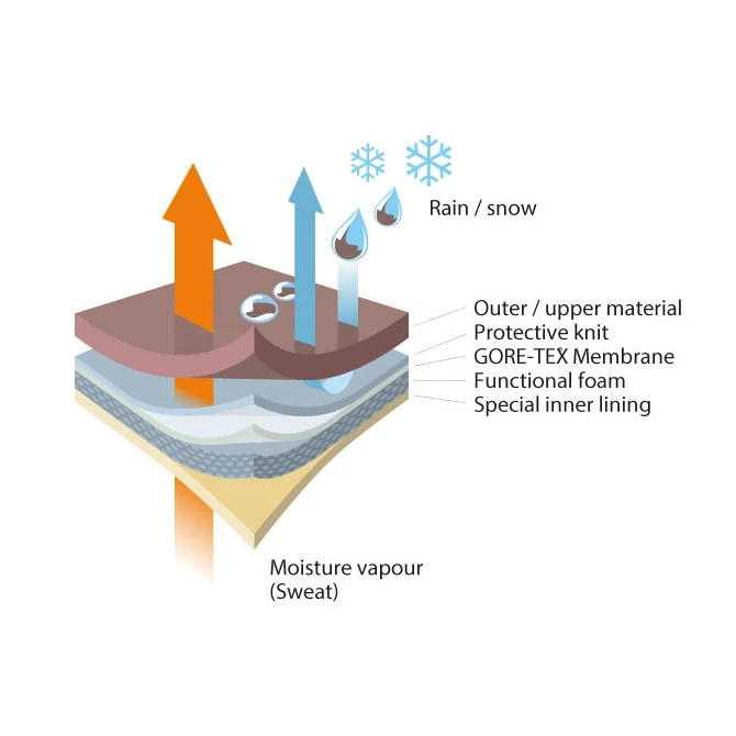 De esta manera se consigue mantener el pie a salvo de la humedad, la transpiración generada por el uso continuado y retener el calor corporal. Además, este sistema de laminado permite el mismo rendimiento que sus antecesores, pero con un 15% menos de peso.