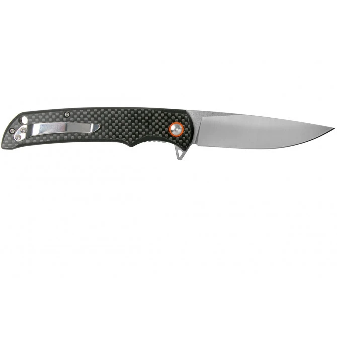 La fabricación de esta empuñadura en fibra de carbono restará peso a la navaja. Este material termoplástico es muy ligero y resistente ante condiciones climáticas adversas, su durabilidad y resistencia son dos de sus cualidades más apreciadas.