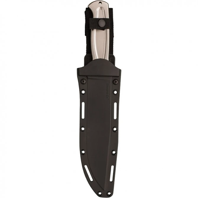 Este cuchillo de Cold Steel de alta calidad viene equipado con una funda de color negro fabricada en un tipo de material termoplástico que es capaz de soportar presiones de todo tipo. Además, incluye sistema de anclaje Secure-Ex, ideal para equiparlo en material policial y/o táctico-militar.