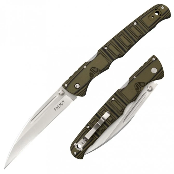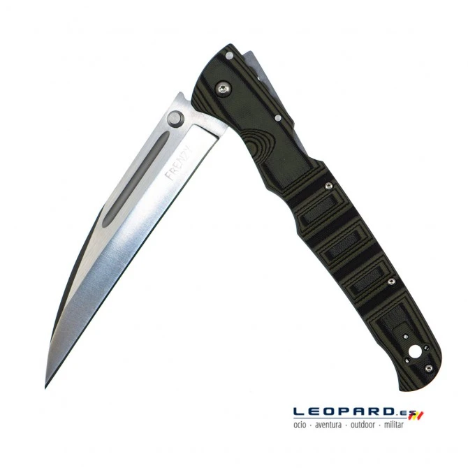 Navaja Cold Steel Frenzy II Green-Black diseñada por Andrew Demko e inspirada en la espada japonesa Kabutowari, hoja fabricada en acero CTS-XHP. Cachas fabricadas en G-10 de color verde y negro. Incluye clip ambidiestro. Incluye agujero para cordón fiador.