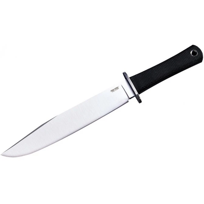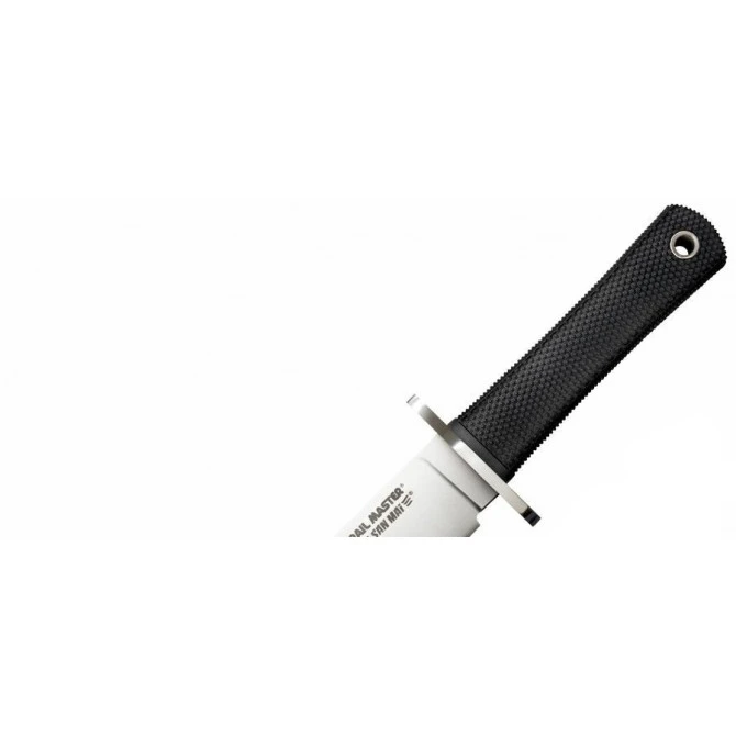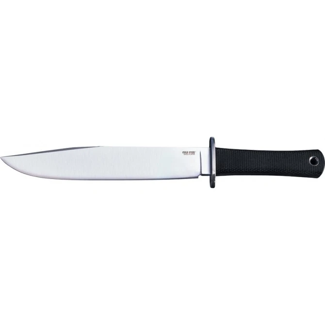 La empuñadura del Cold Steel Trail Master Bowie está diseñada en polímero Kraton, un tipo de material sin precedentes que no se agrieta ni se pudre y es inmune a los estragos del mal tiempo, así como a entornos hostiles de riesgo.
