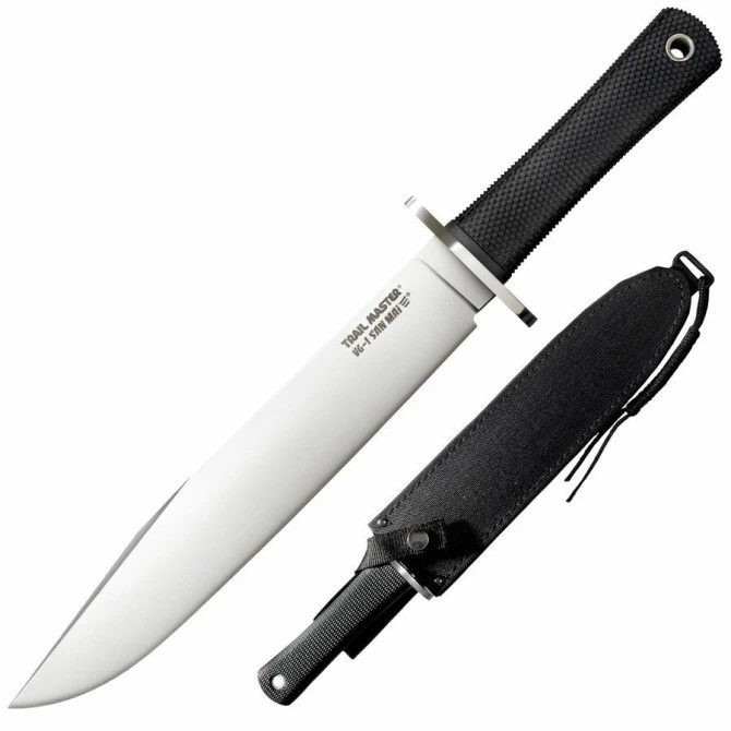 El cuchillo Trail Master de la firma americana Cold Steel representa la culminación de años de desarrollo, pruebas de campo y modificaciones. Este modelo, diseñado por Lynn C. Thompson, fue ideado con el objetivo de convertirse en el mejor cuchillo multiuso de todo el mundo. Destaca su ancha hoja tipo Clip Point afilada a mano y su empuñadura antideslizante.