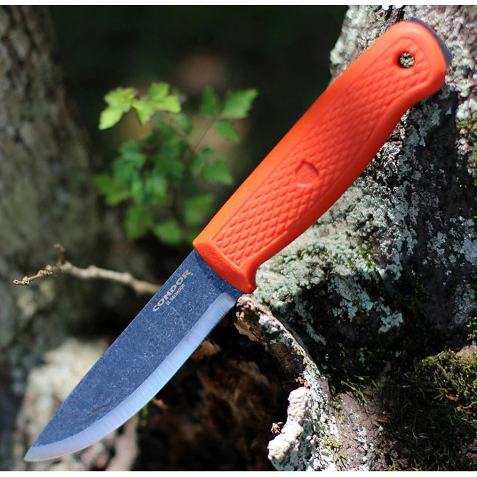 La empuñadura de este cuchillo Condor está fabricada en polipropileno de color naranja, un material tremendamente resistente antes golpes, caídas y preparado para un uso durante largos periodos de trabajos. Tiene un tacto texturizado que dará al portador una comodidad y ergonomía envidiable.