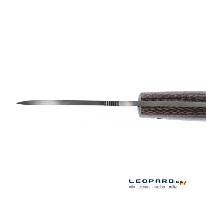 El modelo Bushcraft tiene una cuchilla de 12 cm., por lo que es un producto muy apto para realizar cortes amplios. El estilo desarrollado en este modelo de fabricación española es Drop Point, que tiene como propiedad fundamental la fortaleza y robustez de la punta del cuchillo.