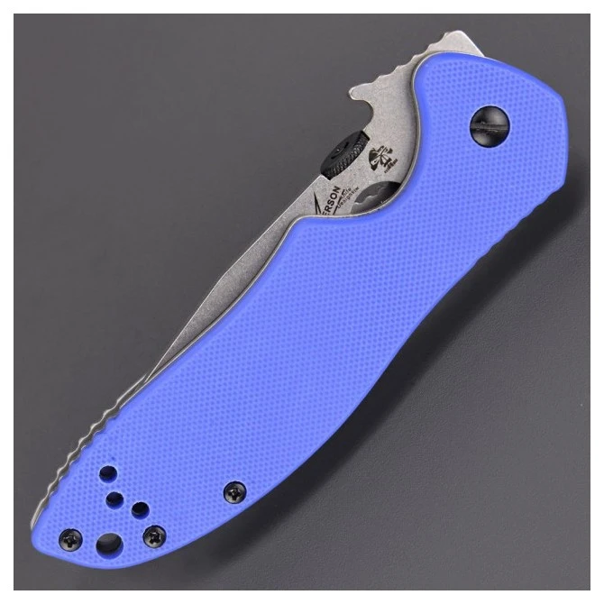 Navaja de entrenamiento Kershaw con apertura Emerson fabricada en acero 3Cr13 acabado lavado a la piedra. Bloqueo Frame Lock en aluminio. Cachas fabricadas en G-10 de color azul. Incluye clip reversible.