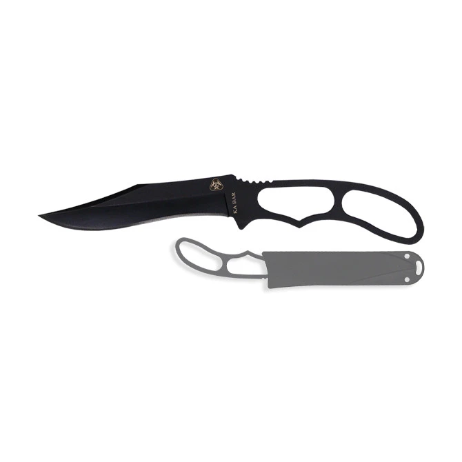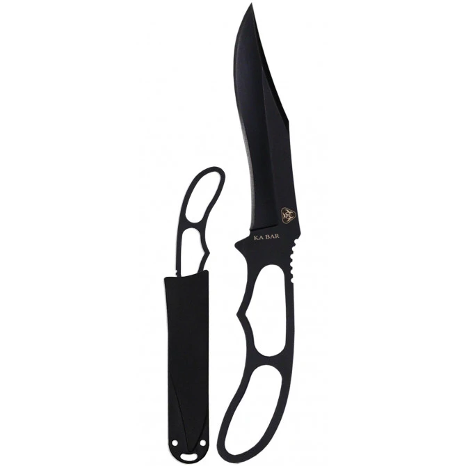 Cuchillo enterizo de cuello fabricado por Ka-Bar, modelo Acheron Skeleton Zombie, con hoja de acero 5Cr13 pavonada negro. Incluye funda de kydex.