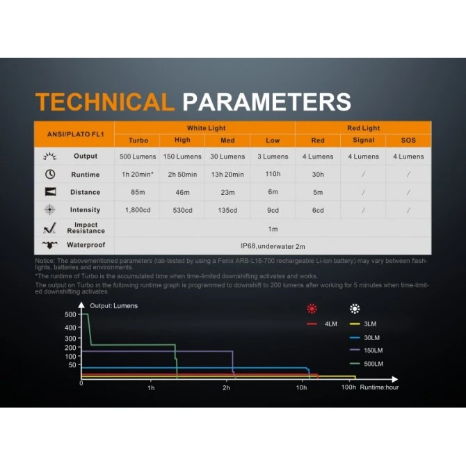 Modo 4 – 3 lumens, alcanza una duración total de 110 horas.