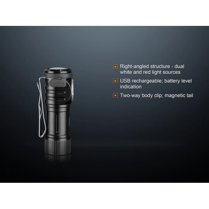 Fenix saca al mercado en 2018 la nueva linterna recargable LD15R. Alcanza una potencia de 500 Lumens y un alcance de 85 m. Se recarga mediante Micro USB. Alimentada por una batería recargable 16340 de Ion-Litio o 1 batería 3V CR123A de litio. Ofrece 4 niveles de intensidad luz blanca y 3 niveles de luz roja. Utiliza un Led blanco Cree XP-G3 y Led EVERLIGHT rojo. Indicador de nivel de batería. Por su tamaño y su potencia es ideal para actividades Outdoor y para el uso a diario.