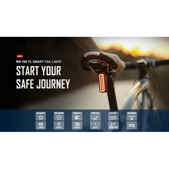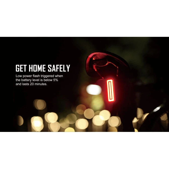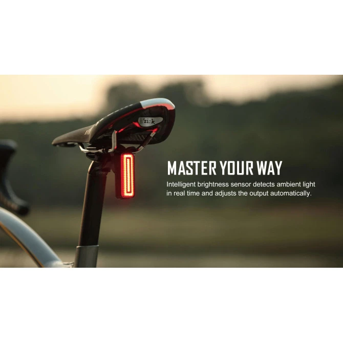La Olight RN 100 TL es una luz trasera para bicicletas, sensible al movimiento y que tiene incorporado un acelerómetro que se pone en modo ráfaga cuando frenas o reduces la velocidad. Nos ofrece una buena visibilidad tanto si la usas de día como de noche. Con una sola pulsación puedes seleccionar el nivel de brillo y los distintos modos de parpadeo y con una pulsación larga se enciende o apaga la linterna.