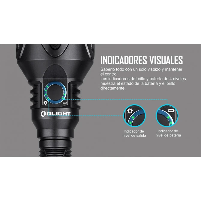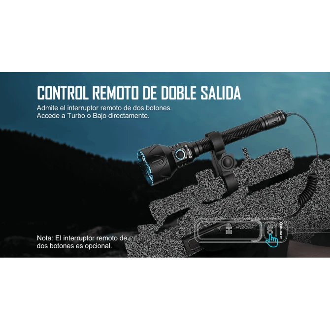Esta linterna incluye un interruptor lateral y uno trasero para que el usuario pueda seleccionar los diferentes modos. Además, dispone de un indicador de batería alrededor del interruptor lateral para que el usuario siempre sepa de cuánta autonomía dispone y en qué nivel de brillo se encuentra. Como accesorio adicional incluye un interruptor remoto de dos botones.