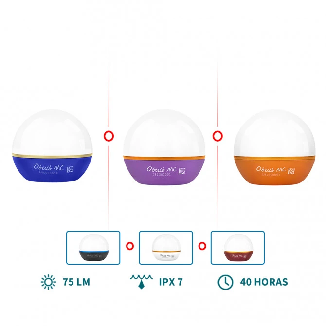 La Obulb MC en color naranja cuenta con una protección IPX7 a prueba de agua y es resistente a los impactos desde 1,5 metros de altura. Así mismo, incluye un botón recubierto de goma para encender y apagar la linterna.