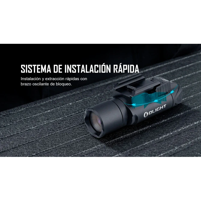 La instalación y montaje en el arma es muy sencilla: cuenta con un sistema de instalación rápida con brazo oscilante de bloqueo y compatible con railes Picatinny 1913 y Glock (se proporcionan adaptadores para ambos railes).