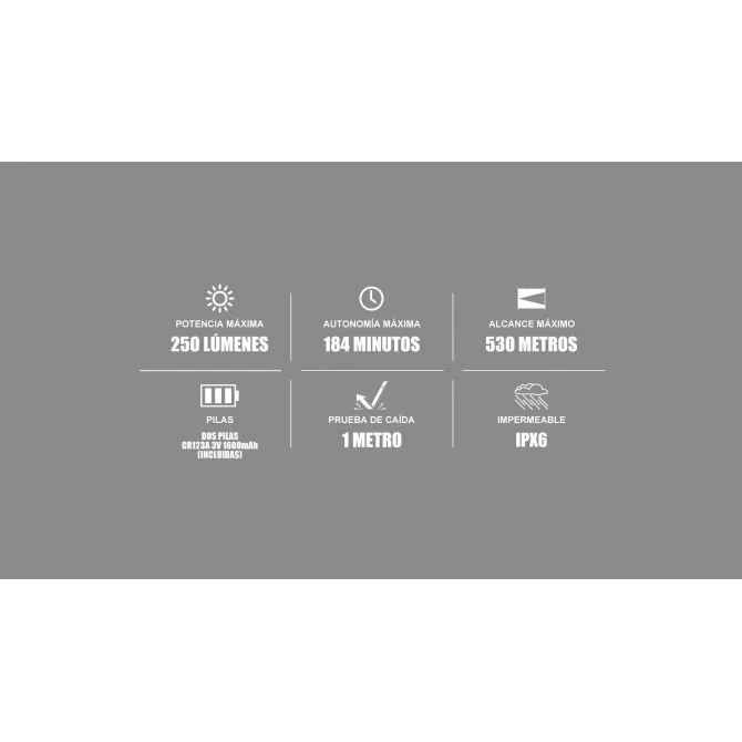 - Potencia máxima: 250 lum