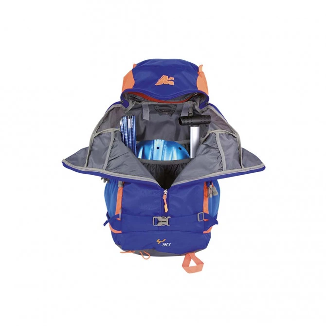 A su vez, este modelo está equipado con portaesquís laterales y delanteros, portador de raquetas de nieve y soporte para piolet. Así, el usuario podrá llevar todos sus instrumentos de montaña bien sujetos. También incluye ganchos para sacos de dormir, un compartimento para guardar los objetos de valor y en cada uno de los lados cuenta con bolsillos externos para las botellas de agua.