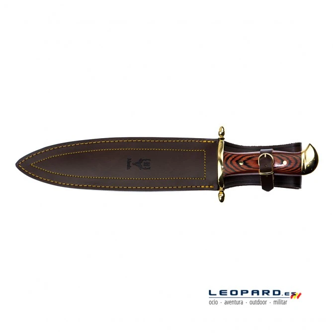 Este modelo de cuchillo viene equipado con una funda de cuero marrón de alta calidad. De esta forma, se protegerá la hoja contra posibles impactos o arañazos y, a su vez, el usuario podrá transportar la pieza con mayor seguridad y comodidad.