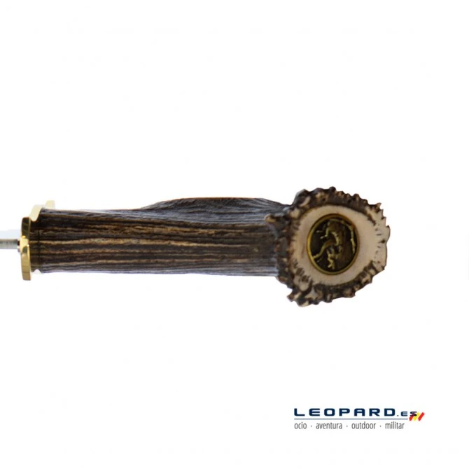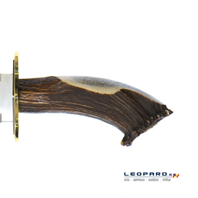 La empuñadura del Podenquero-S es una obra artesanal, puesto que está confeccionada con asta de ciervo. Los cuchillos con esta empuñadura ofrecen una gran calidad y belleza. Asimismo, este material le confiere a esta pieza una suavidad muy agradable al tacto.