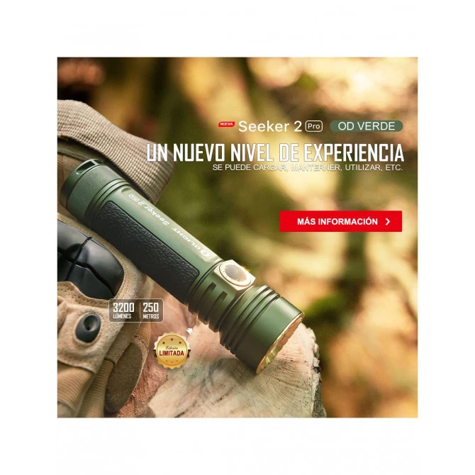 Olight lanza al mercado la nueva linterna Seeker 2 Pro, ahora en color OD Green, un modelo realmente espectacular. Incorpora un avanzado sistema interno con 3.200 lúmenes de potencia y 250 metros de alcance. Se alimenta de una batería recargable con puerto magnético y tiene 12 días de autonomía. Incluye protección IPX8 y 5 modos de intensidad.