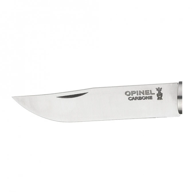 Los desarrolladores franceses de Opinel han desarrollado una hoja de acero con estilo Bowie, que forma una punta muy fina, ideal para la perforación de objetos o texturas. Además, este perfil de cuchillo permite aumentar el control y la fuerza por parte del usuario.