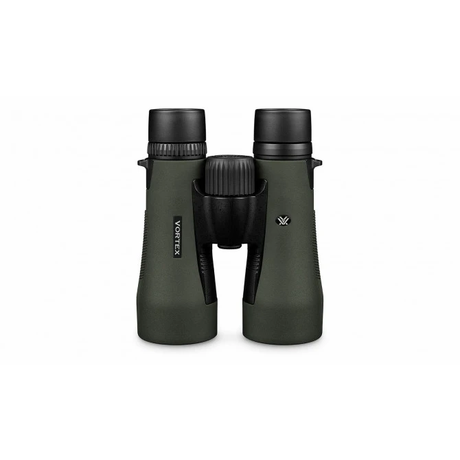 Entre las características propias de los prismáticos Diamondback 12×50 están sus oculares ajustables, para visualización sin anteojos; rueda de enfoque central, que posibilita el enfoque de ambos tubos; corrección de dioptrías y compatibilidad para adaptar un trípode o soporte.