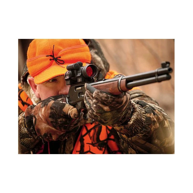 Este visor está perfectamente diseñado para que el tirador pueda disparar sin cerrar ninguno de los dos ojos, lo que facilita su orientación en campo abierto y una mejor ubicación en torno al espacio que ocupa previo al disparo.