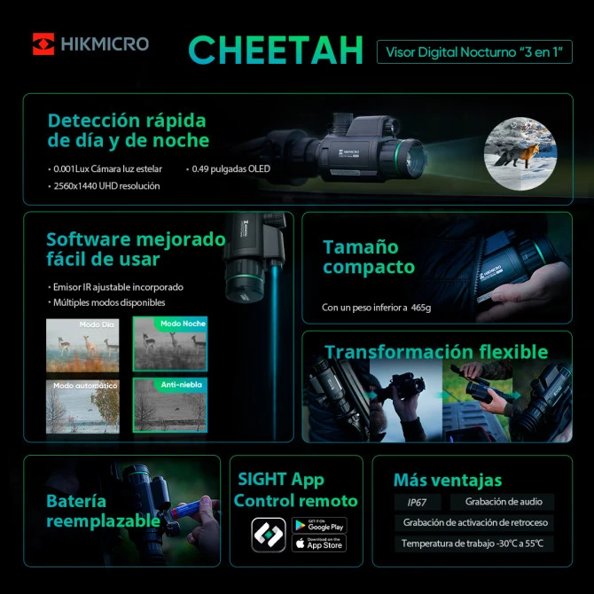 Descárgate la APP HIKMICRO SIGHT para poder controlar el monocular desde tu smartphone o tablet. HIKMICRO SIGHT te permitirá usar todas las prestaciones del monocular como si lo manejaras desde el propio dispositivo. También podrás descargar las imágenes y los vídeos almacenados en la memoria interna del monocular y para todos aquellos modelos que dispongan de medidor de distancia, se podrá activar desde la APP HIKMICRO SIGHT. Compatible con todos los modelos de monoculares térmicos HIKMICRO.